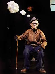 Lesson learnt: never underestimate the power of cotton wool. As the old man slowly lost his grip on the world, the puppeteers, dressed in black, would pull out small cotton-shaped clouds from behind his head, which would then waft across the stage as he desperately fought to catch them back. With the black background, the puppeteers all but disappeared, leaving these soft white clouds floating across the stage as this old man lost his mind.