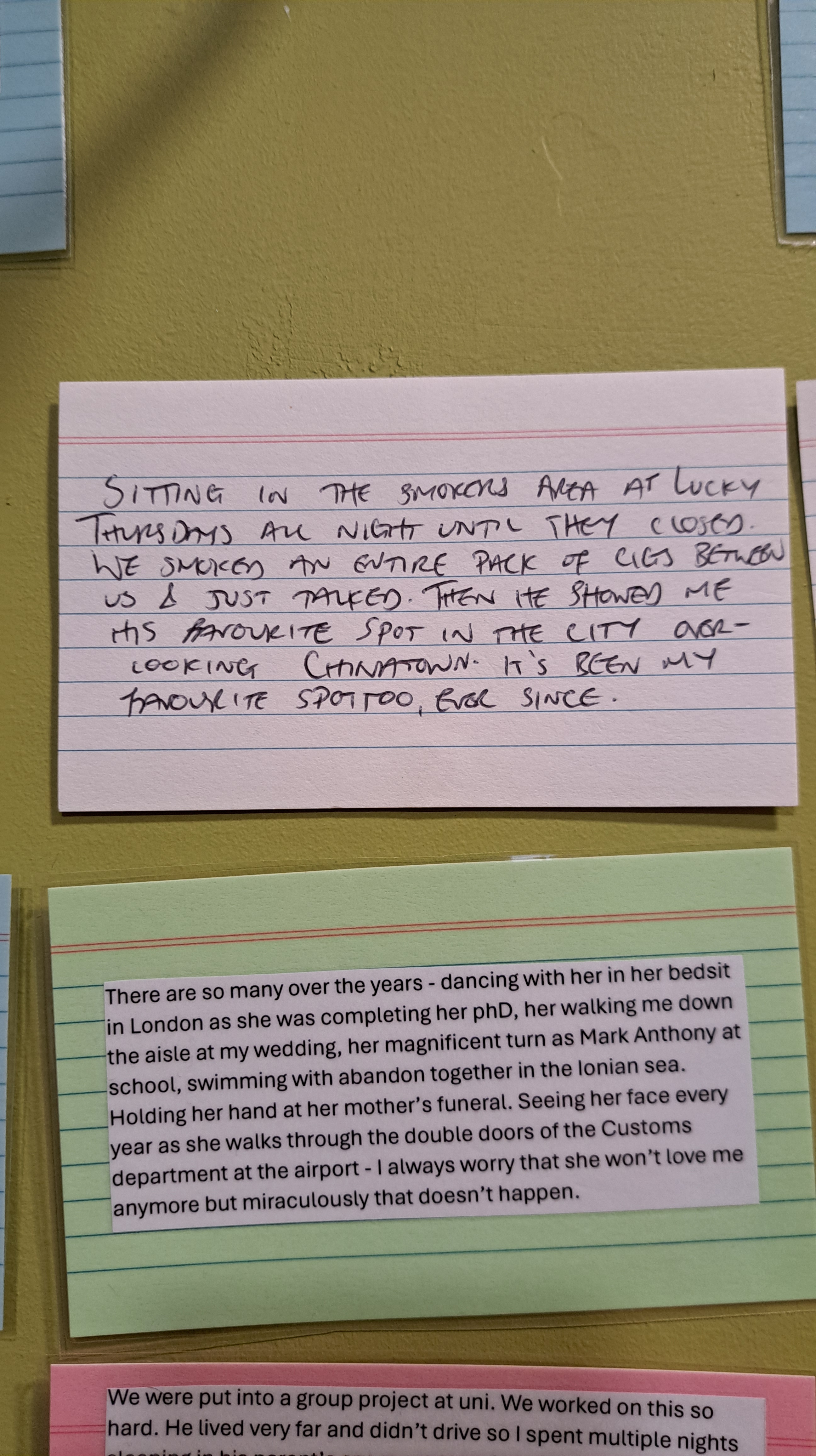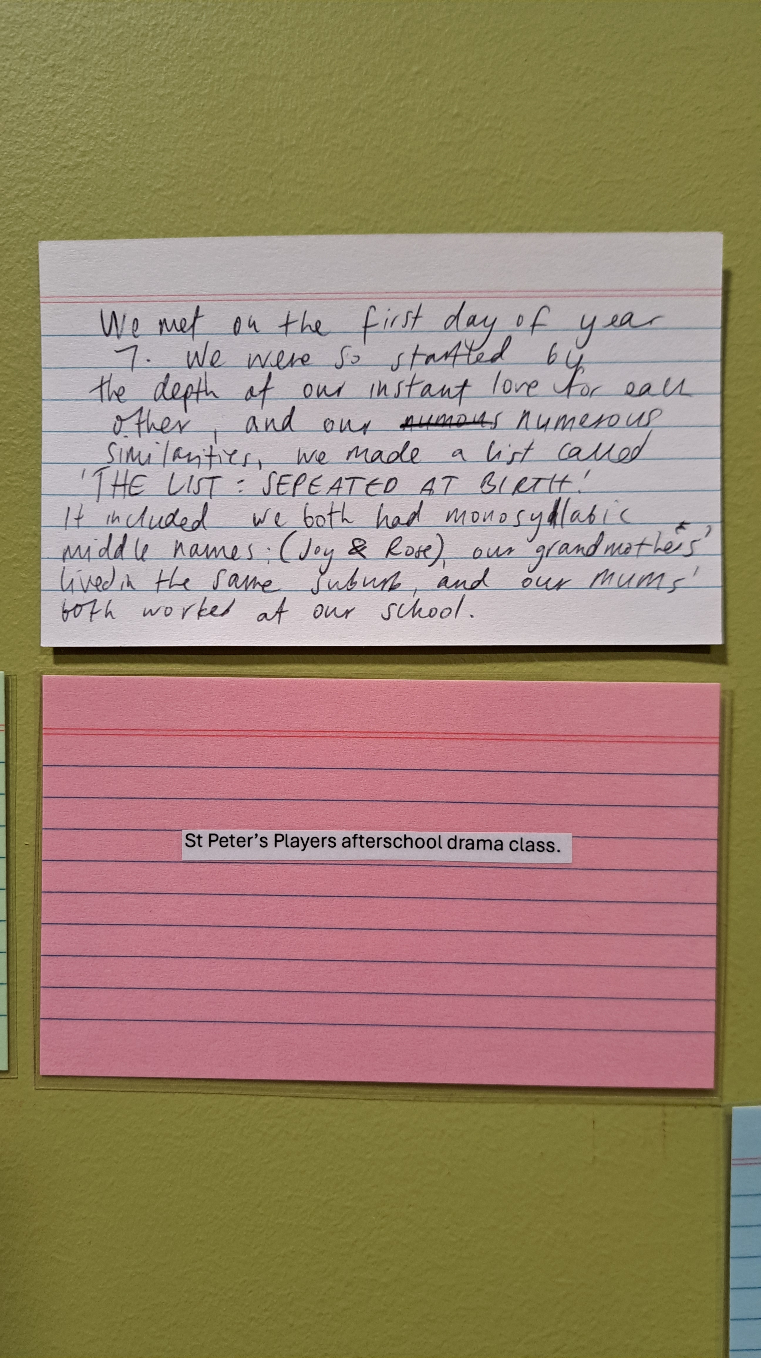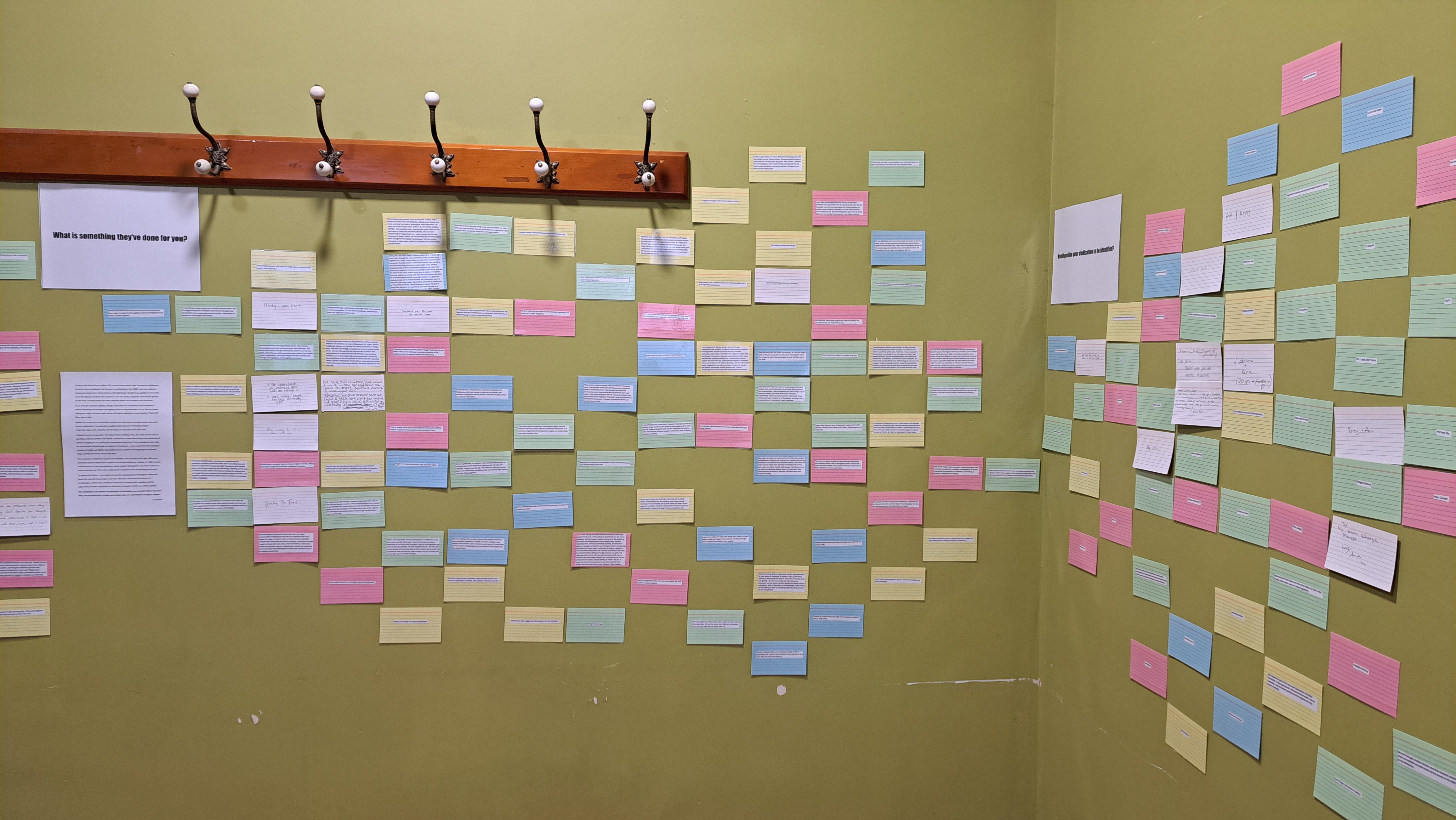 VIMH’s latest work Ballkids (or, scenes from a friendship) sought anonymous contributions from our community about the role that our friends play in our lives. Every digital submission was printed out, laminated, and displayed in the La Mama Courthouse alcove, with space left for handwritten submissions to be made throughout the season.
